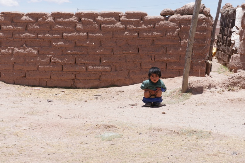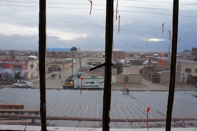 On se lève à 6h30 pour quitter La Paz et arriver à Patacamaya assez tôt pour monter dans l'unique mini-bus de la journée se rendant dans le parc. Mais on nous annonce qu'une course cycliste barre la route et qu'il n'y aura pas de départ avant 16h. Très bien, on dormira à Patacamaya, dont on ne sait rien, et ainsi on sera sur place le matin pour ce fameux mini-bus. Lorsque, dans le car, on demande à l'assistant de nous prévenir quand on arrive à Patacamaya, JB et moi déchiffrons sur son visage un étonnement prononcé et une once de dégoût. Ca s'annonce bien. On débarque donc dans cette ville à la tombée de la nuit. C'est un alignement de baraques assez sinistres le long de la route; une odeur d'urine piquante flotte dans l'air; des bandes de chiens errent et ajoutent des déchets sur les trottoirs en éventrant les poubelles; des mines renfrognées nous regardent passer; il n'y a pas d'électricité car il a plu dans l'après-midi. On évite avec soin les hôtels de passe pour camionneurs et on atterrit dans l'hôtel America. A notre entrée, les clients cessent de manger et on entend que ça rigole en cuisine, au fond: héberger deux touristes gringos semble provoquer une certaine excitation! On dîne à la chandelle et un militaire vient nous saluer, nous demande nos prénoms, nous souhaite la bienvenue, nous demande si on est ici de passage (oui, pas trop longtemps espère-t-on), serre la main de JB et me fait la bise, puis s'en va.